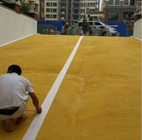 美紋紙是在抗壓層施工干了以后,貼好美紋紙,有些客戶做好防滑層以后就忘記揭掉美紋紙,導致美紋紙粘在上面弄不下來,影響坡道美觀,因此美紋紙要在防滑層施工后立即揭掉。