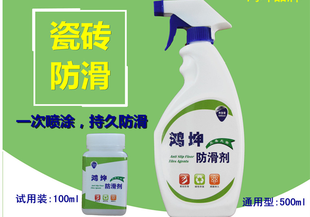 家庭、賓館、醫院、餐廳、超市、辦公樓、商務中心、健康俱樂部、浴室、游泳池、食品廠的瓷磚、大理石、花崗巖、陶瓷、混凝土、水磨石等地面以及浴缸的安全防滑。鴻坤瓷磚防滑劑為高分子水性聚合物,使用后不會產生對人體有害的殘留物,地面越濕滑,效果越顯著。