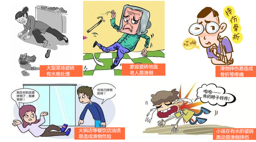 瓷磚地面防滑劑是一種新型的環保,高科技產品,其性能卓越,使用廣泛且水性、凈味、具有超強的滲透力的水溶制劑防滑產品,通過與地面磚或地面石材的化學反應,能有效滲入瓷磚磚及石材毛細通道,使該通道增寬且有一定深度,遇水或油漬時與鞋底接觸能形成物理的吸盤作用,人行其上絕對安全!