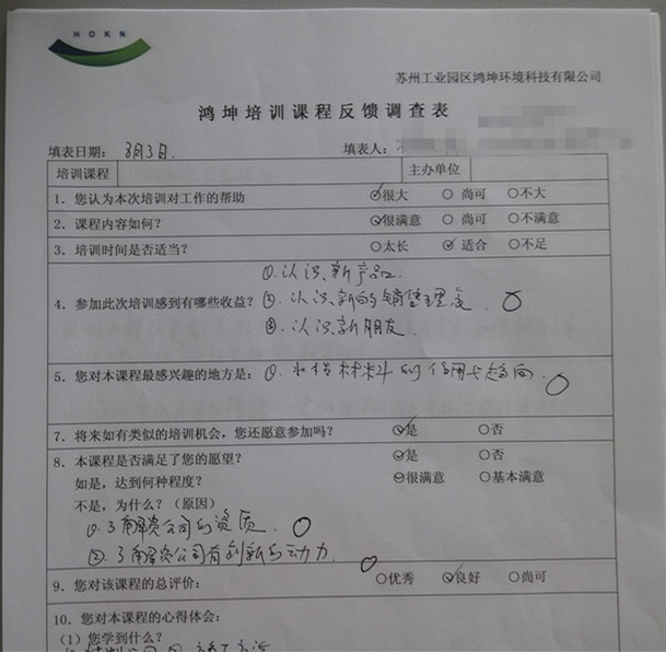 南京林總對于鴻坤企業第三期地坪知識講座認為對工作幫助很大,對我們設置的課程內容很滿意,培訓時間適合。 鴻坤企業:參加此次培訓感到有哪些收益?南京林總:1.產品的特性;